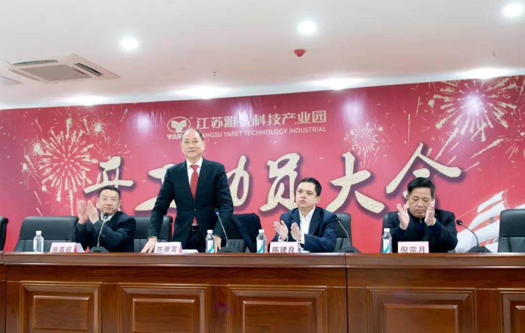 一元復始,萬象更新。2019年2月15日上午8時30分,集團與江蘇雅泰科技產業園分別在上海與宿遷兩地順利召開了新春開工動員大會,董事長陳康富攜集團公司總裁班子成員向參會的各部門各車間員工拜年,向大家送去新春祝福和美好祝愿。