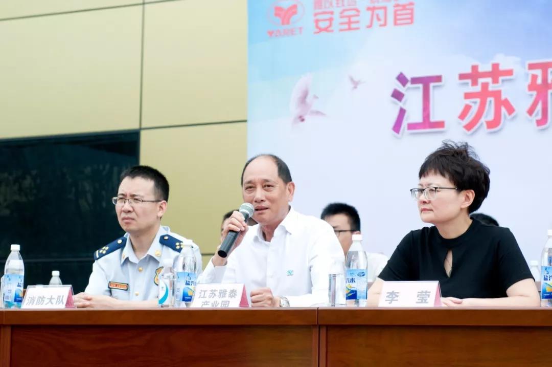 活動上,集團公司董事長陳康富做了演練前的動員講話,他首先提到:安全是生產的前提,是所有工作的基礎。安全生產不僅是企業發展的重要保障,更是每個雅泰人生活幸福的重要保障。此次活動,是對雅泰人應急反應的檢驗,是對雅泰園區安全的檢驗,是對雅泰未來完善安全重點落地執行的檢驗。其次,他也對參與此次活動并給予支持的經開區領導、區部分重點工業企業負責人表示了感謝。