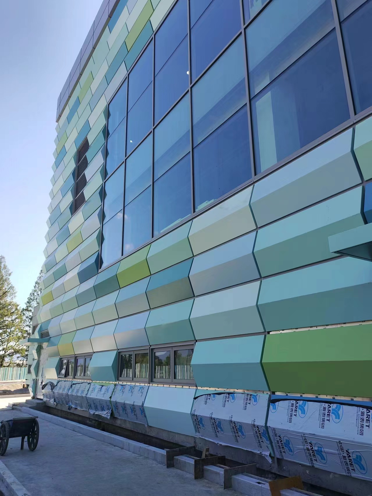 農夫山泉項目使用了個性化定制的多種顏色鋁單板幕墻,項目幕墻對油漆調配技術要求十分嚴格,這也符合雅泰鋁單板幕墻產品可定制加工的特點。