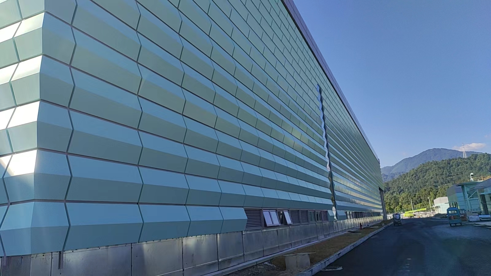 外立面采用了“竹”設計理念,使用了雅泰提供的大片綠色鋁單板幕墻,突出建筑的水平延展,給人以建筑與山川延綿相連的感受,將建筑融于自然。