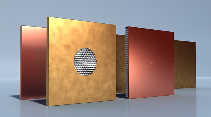 · 銅蜂窩板是以銅板為面板、合金鋁板為背板、鋁蜂窩為芯層,經涂覆高強度環氧膠,加壓復合而成的蜂窩式夾層結構板材