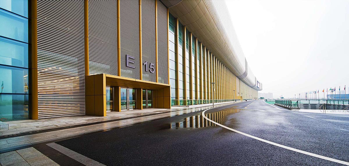 杭州國際博覽中心位于杭州市蕭山區錢江世紀城,是二十國集團領導人第十一次峰會的主場館,其作為浙江省重點項目規劃建筑面積84萬平方米,設有展覽中心、會議中心、綜合物業、屋頂花園(城市客廳)、地下商業及車庫等五大功能區。展覽中心設計國際標準展位7500個(其中1000個為室外展位);會議中心能滿足舉辦APEC、達沃斯等高規格的國際會議;規模6萬平方的屋頂花園結合城市客廳既能滿足高規格接見、高標準宴會、高檔次精品展的需要,城市客廳與錢塘江對岸的“城市陽臺”遙相呼應,形成一個新的城市亮點。